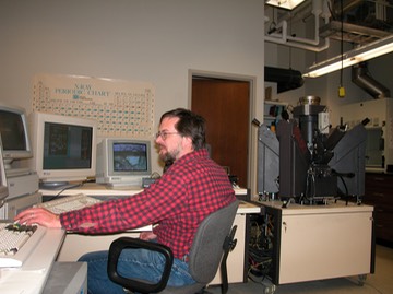 The electron probe microanalyzer in the Department of Earth and Planetary Sciences. This instrument is capable of analysis of mineral samples as small as 10 µm in diameter.