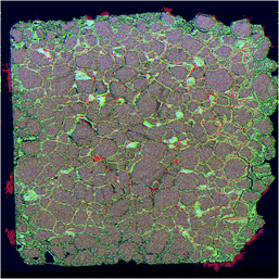 Metamorphism of carbonate rock is commonly the result of reaction between the minerals in the rock and an H2O-rich fluid. One example is the breakdown of dolomite, producing calcite + periclase. The reaction results in a reduction of the solid volume of the rock and a production of CO2. Both contribute to the increase in permeability during reaction, permitting continued ingress of H2O. We have attempted to determine some of the processes that occur during infiltration and reaction experimentally. We cut 4 mm diameter cores of dolomite rocks with a variety of textures ranging from fine-grained sedimentary dolostones to coarse-grained dolomitic marbles. Experiments are carried out using a conventional cold-seal hydrothermal apparatus. The dolomite rock cores were sealed in gold capsules with an aliquot of isotopically enriched water of composition HD18O0.516O0.5. The samples were held at a P = 100 MPa and T = 650–700 °C for durations ranging from a few days to a few months.