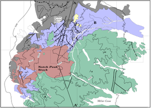 The Middle Jurassic Notch Peak stock is a quartz monzonite stock that intruded Lower Cambrian limestone and argillaceous limestone in west–central Utah. The petrology of the metamorphosed carbonate rocks was studied by Vicki Hover and Jon Novick. Peter Nabelek measured C and O isotope compositions of the limestone and argillite and found significant depletion in the δ13C and δ18O in the high-grade argillites. The nearly pure calcite limestones, however, showed no change in delta values. With the existence of wollastonite in the argillites, Peter and I concluded that the argillaceous rocks were host to a large volume of water, probably exsolved from the crystallizing stock; whereas, the limestone marble was impermeable.